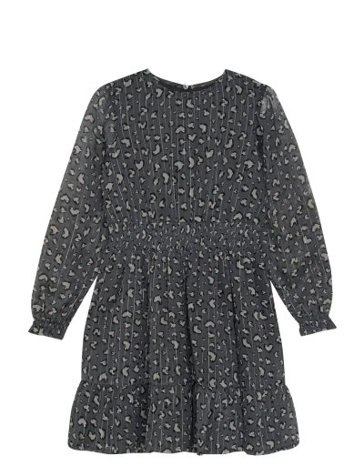 Sweet long-sleeved all-over printed dress from Creamie. The dress has a wide smock elastic in the waist and a smaller smock elastic in the sleeve opening. The sleeves are semi-transparent and the rest of the dress consists of two layers, where the inner one is in a tightly woven cotton quality, so that it does not appear transparent. It closes at the back with a button above a drop-shaped cutout.