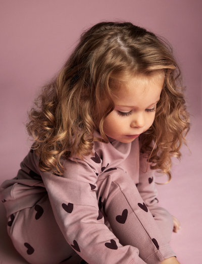 Beautiful all-over printed trousers from Creamie in a dusty pink with a heart print. The trousers are made of soft material, which is comfortable to wear. The trousers have wide legs and a wide elastic edge at the waist, which ensures a good fit. Certified acc. to GOTS - organic CERES-0366