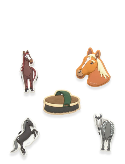 Detta set med fem roliga berlocker har en rad olika hästmotiv som gör det enkelt att personifiera dina skor. Setet innehåller ett hästhuvud, en hel häst, en hästborste och mycket mer.