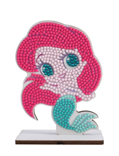 Figuren är cirka 11 cm i storlek och kommer med en bas på cirka 8 cm i bredd. Trämallen och botten är gjorda av laser-skuren fanér. Det tar mellan 20-30 minuter att skapa en Crystal Art Buddy. lämplig för vuxna och barn från 6 år och uppåt. i sällskap av en vuxen.
