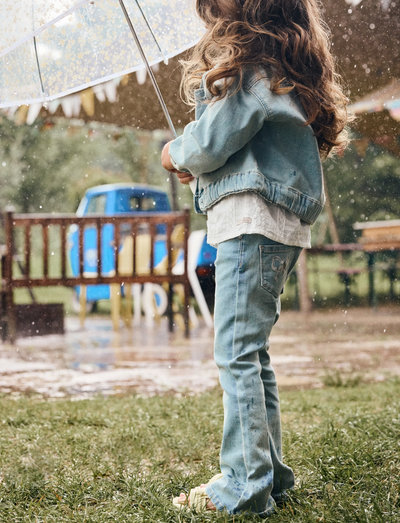 Bootcut fitDenim pants from Daily7Kids. The pants have a flared fit. They are solid-colored with a bow print on the back pockets. They feature belt loops as well as front and back pockets. The pants close with a zipper and button. Certified acc. to OEKO-TEX® STANDARD 100 Cert. No. 2276-364 DTI