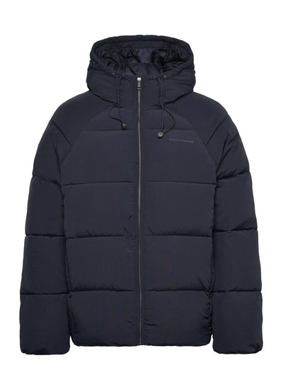 Denna pufferjacka erbjuder en bekväm och varm silhuett med raglanärmar och ribbade muddar för en åtsittande passform. Den är utrustad med en tonal dragkedja, praktiska fickor och en huva med elastisk kragejustering. Dolda dragskor i fållen möjliggör enkla passformsjusteringar. En tonal logotyp pryder bröstet.