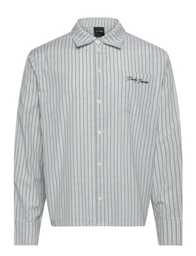 Denna oversized skjorta är tillverkad av randig bomull, vilket ger en lätt och luftig känsla. Den har en knappslå fram, en krage med ståkrage och ett ok bak som ger en strukturerad passform. En broderad logotyp pryder bröstfickan och fulländar designen.