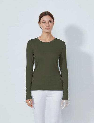 GolfDenna långärmade tröja är skapad för komfort och ger en strömlinjeformad silhuett och en mjuk känsla mot huden. Den enkla designen gör den till ett mångsidigt tillskott till varje aktiv garderob, lätt att kombinera med andra plagg för lager på lager eller bäras separat för en minimalistisk look.