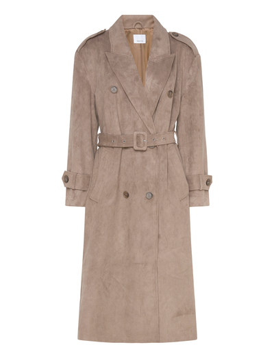 Denna trenchcoat är tillverkad av bonded mockaimitation och har klassiska element med en avslappnad silhuett tack vare de nedhasade axlarna. Den dubbelknäppta designen och de skräddarsydda detaljerna förstärker det sofistikerade utseendet, medan det matchande bältet framhäver midjan. Den har även sidfickor och är helfodrad.