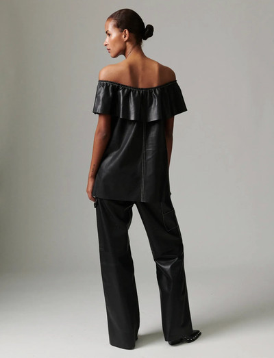 This buttery leather top features a ruffled, elasticated off-shoulder yoke across the chest and back. Wear it with straight-leg jeans for an effortlessly elegant look.