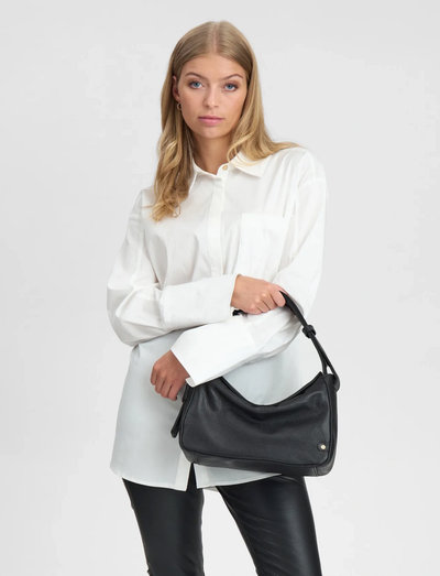 Denna axelväska är en raffinerad vardagsfavorit som balanserar tidlös enkelhet med en modern känsla. Den rena silhuetten ger en ledig stil, medan den justerbara remmen gör att du kan anpassa passformen, buren nära eller lös. En magnetisk flikförslutning ger enkel åtkomst och säker förvaring. Inuti ger ett djärvt leopardmönstrat foder en rolig och oväntad twist som skänker glädje varje gång du öppnar den. Perfekt storlek för dagliga nödvändigheter, och ett stilfullt val för alla årstider.