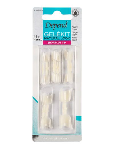 Applicera ett tunt lager Depend nagellim på tippens fästyta, den tunna delen längst ner på tippen. OBS! Ej över hela tippen. Applicera tipparna och tryck ordentligt i 5-10 sek. Använder du en Shortcut Tip så bryt inte av tippen förrän den är applicerad.
