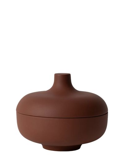 Carina seth andersson har återigen lyckats balansera perfektion och särprägel i sina nya tillskott till sand, hennes serie av stengods som ursprungligen skapades för nationalmuseum i stockholm. de olika föremålen är abstrakta men ändå välbekanta och anspelar på gamla traditioner som förädlats till perfektion. "det uppstår ett överraskningsmoment när man lyfter på locket", säger carina seth andersson. "kockens hemligheter avslöjas! tillsammans skapar dessa lergodsobjekt ett helt litet landskap på bordet." trenden att duka fram en mängd olika rätter kräver verkligen att scenen dukas upp med en mängd olika kärl. de tre svarta och lerfärgade lergodsburkarna är glaserade på insidan och råa men mjukt polerade på utsidan och finns i tre olika storlekar.