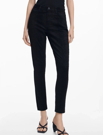 Skinny fitDessa Desigual-jeans är ett snyggt och mångsidigt tillskott till vilken garderob som helst. De har en elegant, smal passform och ett unikt ormskinnsmönster. Jeansen är gjorda av högkvalitativa material och är designade för att vara bekväma och smickrande.