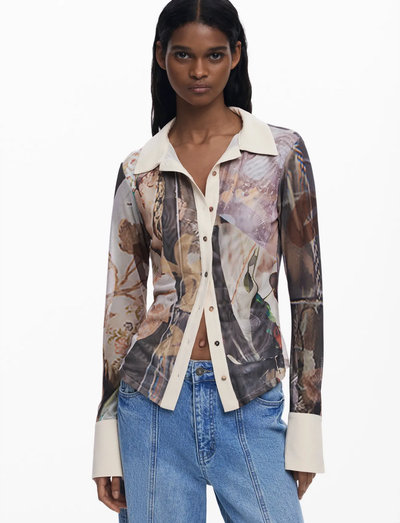 Skir kvalitet och en knäppning framtill definierar denna långärmade skjorta. Det heltäckande trycket ger en konstnärlig touch, medan den klassiska kragen och manschetterna ger en elegant finish. Kombinera den med dina favoritunderdelar för en chic, lager-på-lager-look.