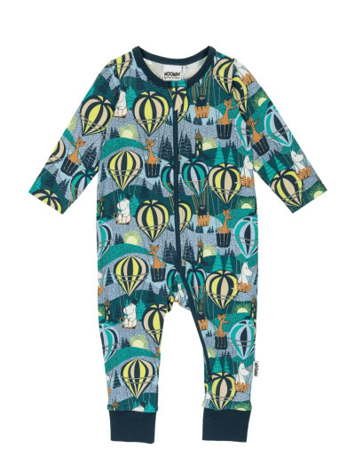 En mjuk och mysig Mumin pyjamas för baby. Med långa ärmar och långt tvåvägsblixtlås för lättare påklädning. Produkten innehåller certifierad ekologisk bomull.