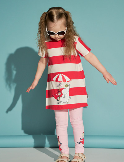 En mjuk och skön Mumin tunika för barn. Den A-linjeformade tunikan har korta ärmar och rund halsringning. Produkten innehåller certifierad ekologisk bomull.