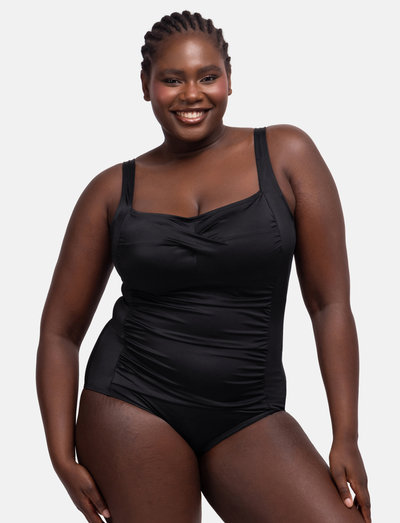 Den här baddräkten är designad för en smickrande passform och komfort. Den har en klassisk stil med en rund halsringning och justerbara band. Tyget är mjukt och stretchigt, vilket gör det perfekt för simning och solbad.
