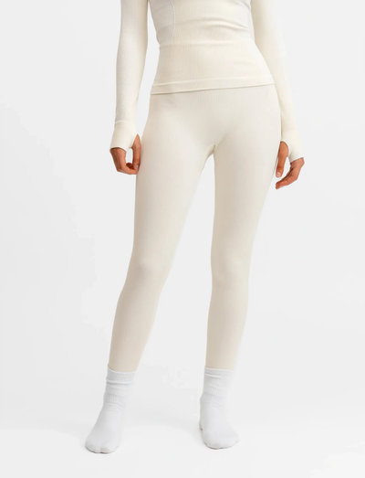 Upplev obegränsad rörelse under vinteraktiviteter med dessa tights som baslager. De är designade med termiska egenskaper och fyrvägsstretch i ett skulpterande, sömlöst tyg, och de ger andningsförmåga och kompression. Den höga, ribbade linningen och de konturerade, ribbade panelerna ger stöd.