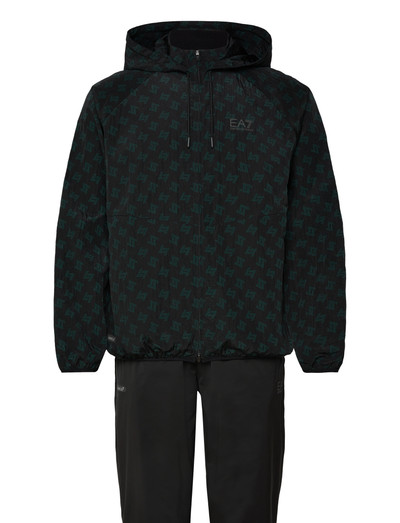 Det här setet ger en koordinerad look med sin mönstrade jacka och enfärgade underdel. Jackan har huva och dragkedja, medan byxorna ger en bekväm passform för olika aktiviteter.