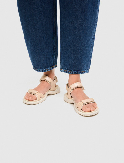 Dessa sandaler har en strömlinjeformad design med minimala sömmar och subtila överläggningar, vilket ger ett uppdaterat utseende. De tre justerbara remmarna kan öppnas helt för att ge dig en perfekt passform. Lätta och funktionella, de är idealiska för utomhusäventyr och avslappnad användning i varmt väder.
