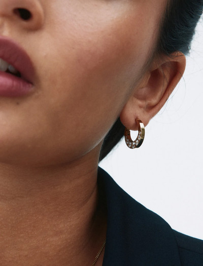 Dessa större hoops, pläterade i 14K guld, är prydda med gnistrande stenar, vilket gör dem till en framtida klassiker. Som en del av jubileumsserien firar dessa örhängen två decennier av skapande av tidlöst eleganta smycken som passar för alla tillfällen. De ger en raffinerad finish till varje ensemble.