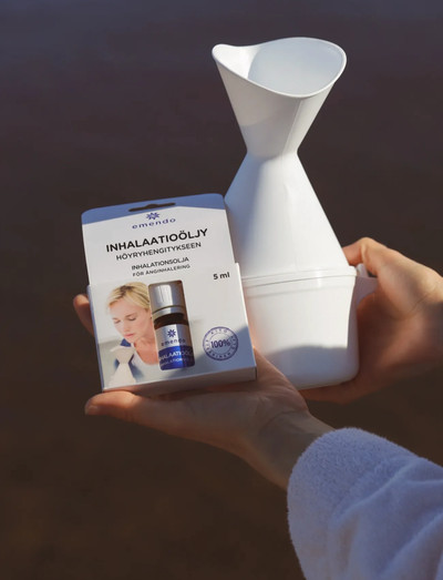 Ånginhalation lindrar förkylningssymptom och nästäppa. Inhalatorn är lätt att använda och går utmärkt att användas vid ånginhalering med Emendos inhalationsolja. Inhalationsoljan innehåller äkta 100% eteriska oljor: eukalyptus, cajeput och pepparmynta. Inhalationsoljan säljes även separat. Kan också användas för enbart ånginhalering.