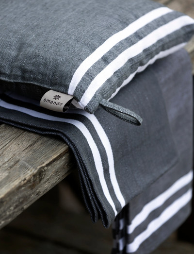 Placera bastudynan under huvudet, bakom nacken eller ryggen och slappna av i värmen i bastun. Bastudynans tyg är tillverkade av högklassigt lin (60 %) och återvunnen bomull (40 %), fyllningen flamsäker vadd. Bastudynan tål maskintvätt och torkar snabbt även mellan täta bastubesök.