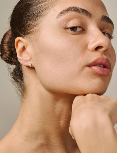Sana Stud, in silver, is an elegant ear stud with a droplet-like, organic shape. The minimalistic design and shiny finish create a calming, feminine balance. Sana looks beautiful on its own but can also be mixed with other ear studs for a personal and modern styling. Sana stud is also available plated with 18 karat gold.