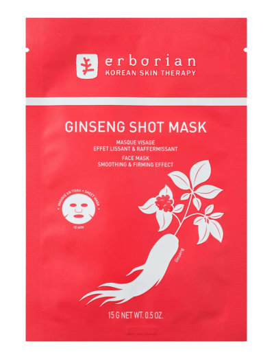 Berikad med en formula av Ginseng, känd för sina utjämnande och återfuktande fördelar, hjälper GINSENG SHOT MASK till att ge en känsla av friskhet tack vare en struktur gjord av cellulosafibrer, som hjälper till att sprida de aktiva ingredienserna.