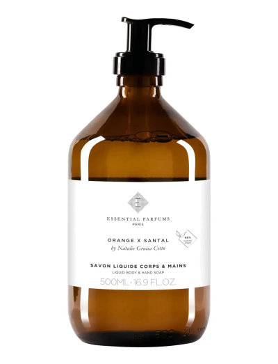 Flytande kropps- och handtvål delikat parfymerad med Orange Santal av Natalie Gracia-Cetto - 98% naturlig.