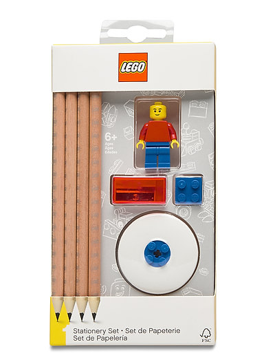 Detta fantastiska LEGO-set innehåller fyra pennor, ett suddgummi, en pennvässare och viktigast av allt en cool minifigur som kan placeras ovanpå pennan. Topper ingår. Den perfekta presenten till LEGO-fantasten du känner!