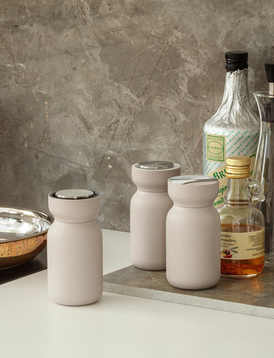 Stilren och genomtänkt design: En mjuk silhuett, neutrala nyanser och en form som ligger behagligt i handen. Den breda öppningen gör det smidigt att fylla på kvarnen och de tydliga färgmarkeringarna gör det enkelt att se skillnad på salt och peppar.