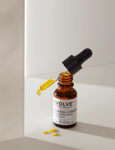 Evolve Bio-Retinol + C Booster är en oljebaserad booster för din hud, framtagen för att fräscha upp tråkig och trött hud. Den tillför den näring din hud behöver för att se strålande fräsch ut. C-vitamin och Bio-Retinol används för att tillföra optimal energi och näring. I denna produkt använder vi fyra potenta vitaminer (A, C, F och E) som blandas i en mild och lätt bas av nyponolja. Detta gör det möjligt för produkten att tränga djupare in i huden jämfört med vattenbaserade produkter.