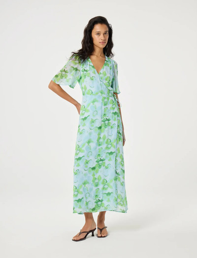Denna maxiklänning har en smickrande omlottsiluett som ger en ledig och elegant look. Designen har korta ärmar och ett knytband i midjan som framhäver den feminina formen. Perfekt för sommarevenemang eller en sofistikerad vardagslook.