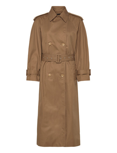 Denna dubbelknäppta kappa har en tidlös silhuett och ett midjebälte med ett spänne täckt av skalmaterial. Designdetaljerna inkluderar raglanärmar, axelklaffar och ärmflikar med knäppning. En sprund baktill, ok och innerficka fulländar designen.