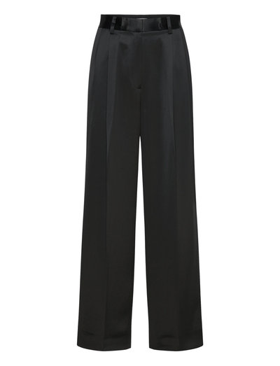 Pleated wide-leg trouser with classic tailored details. Designed with 2 pleats at front + press crease, zip fly and slanted side pockets. Jetted pockets and double darts at back.