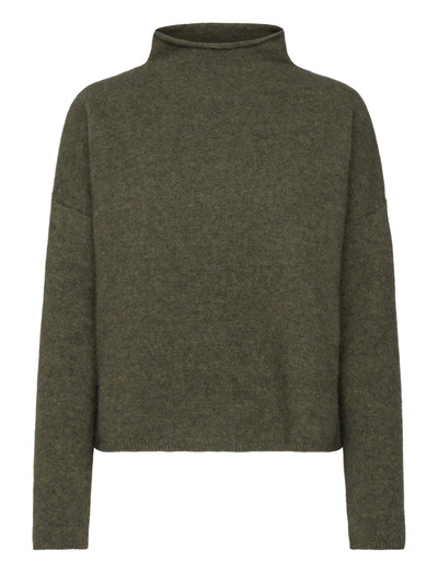 Heavy funnel neck sweater in yak wool blend. Dropped shoulder. Hip Length. Loose fit.