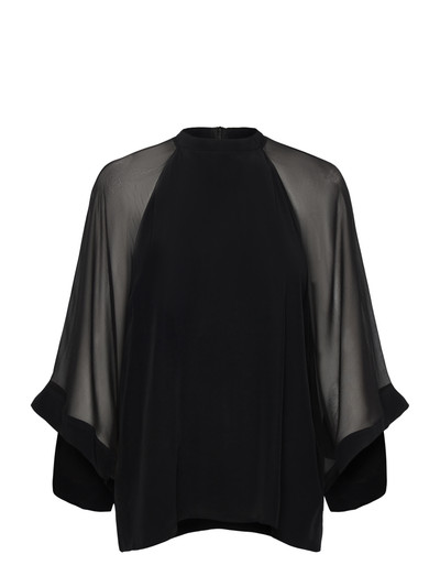 Denna blus har transparenta raglanärmar och ger en modern twist till en klassisk silhuett. Den är designad med en dubbelvikt halsringning och slitsar nedtill i sidsömmarna, samt en dold dragkedja i nacken.