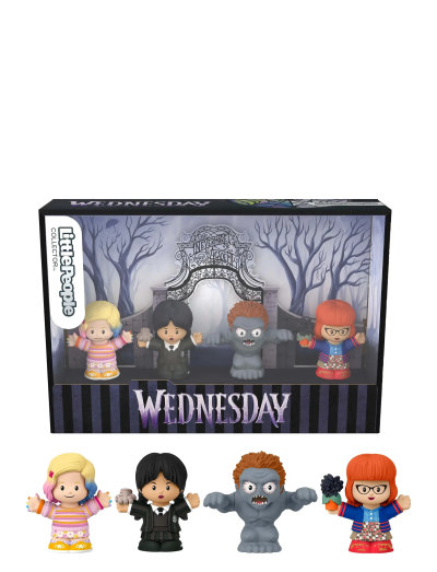 Fans av hitserien Wednesday kan fira tonårsrädsla och läskiga ögonblick med det här Little People Collector-figursetet från Fisher-Price i specialutgåva. I det här roliga setet ingår Wednesday Addams med Saken, Enid Sinclair, Marilyn Thornhill och Hyde-monstret som alla omvandlats till Little People-figurer. Samlingssetet levereras i en låda med fönster med mörka och fruktade scener från Nevermore och är en perfekt present till Wednesday-fans, familjen Addams-entusiaster och samlare!