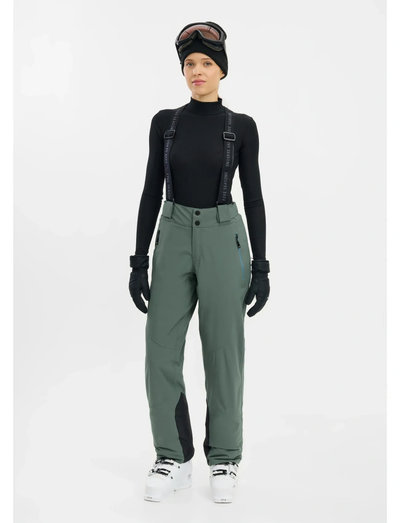 Dessa skidbyxor är designade för kvinnor som vill ha ett bekvämt och funktionellt plagg för sina vinteräventyr. De är gjorda av ett vattentätt och andningsbart material som håller dig torr och varm i alla väderförhållanden. Byxorna har en regular passform och är utrustade med tejpade sömmar för maximalt vattentätt skydd. De har också en 4-vägs stretch för optimal rörelsefrihet.