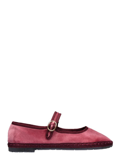 Dessa sammetsballerinas har en klassisk Mary Jane-silhuett och är avslutade med ton-i-ton-piping. En delikat spänneförslutning fulländar designen.