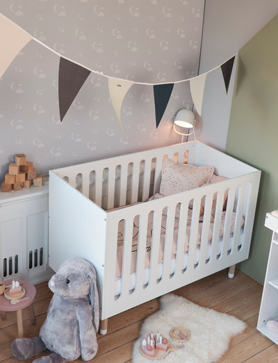 FLEXA Dots Baby cot is designed by Charlotte Høncke. The rounded organic details of the baby cot make sure that your child is safe and also bring a modern feel to the baby cot. By lowering the mattress platform the baby cot converts into a toddler bed perfect for the child between 0-3 years. The mattress is not included.