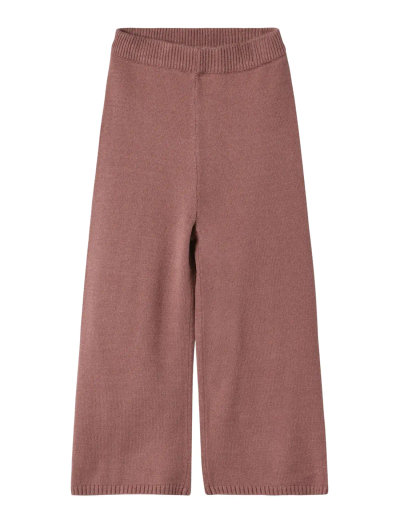 Mjuka stickade byxor i en puderrosa nyans som ger värme och en avslappnad passform. Dessa byxor med vida ben har en elastisk midja för komfort hela dagen, perfekt för både lek och avkoppling. Tillverkade med LENZING™ ECOVERO™ viskos; dessa byxor representerar ett medvetet val, tillverkade av ansvarsfullt anskaffad trämassa med minskad miljöpåverkan.