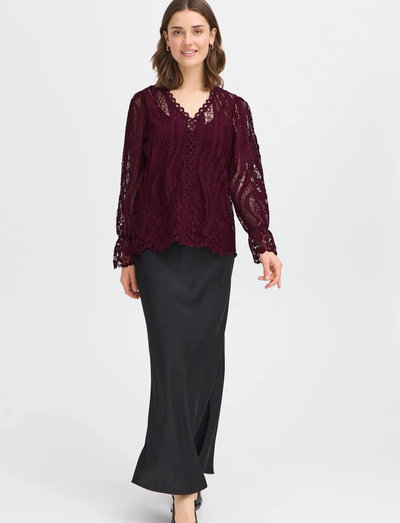 Detaljerad spets förhöjer denna långärmade blus, vilket gör den till ett sofistikerat val för alla tillfällen. Den fina kanten runt halsringningen ger en touch av elegans, medan de subtila ballongärmarna skapar en smickrande silhuett. Kombinera den med skräddarsydda byxor eller en kjol för en elegant look.