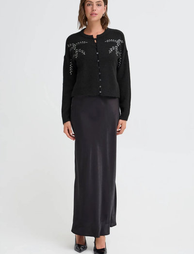 Delikata utsmyckningar ger en touch av elegans till denna mjuka stickade kofta. Den klassiska knäppningen gör den till ett mångsidigt lagerplagg, perfekt för att addera värme och stil till vilken outfit som helst.