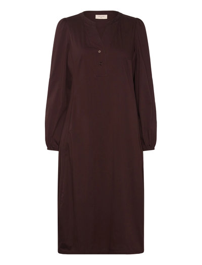 Denna klänning är tillverkad i ett lätt material och ger en bekväm och luftig känsla. Den har en lös och avslappnad passform och en knappstängning, vilket gör den till ett mångsidigt tillskott till varje garderob.