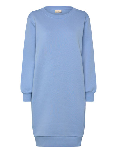 Denna klänning är tillverkad i ett mjukt material och har en bekväm och avslappnad passform. Den har en rund halsringning, långa ärmar med muddar, praktiska sidfickor, diskret ribbning och omsorgsfullt placerade sömdetaljer som ger en smickrande silhuett.