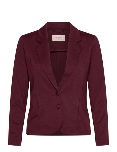 Jacket from Freequent in a soft and stretchy material. The jacket has a simple silhouette with fabric covered buttons on the front and the long sleeves, V-neck with lapel, subtle side pockets and an elegant form-fitting shape.