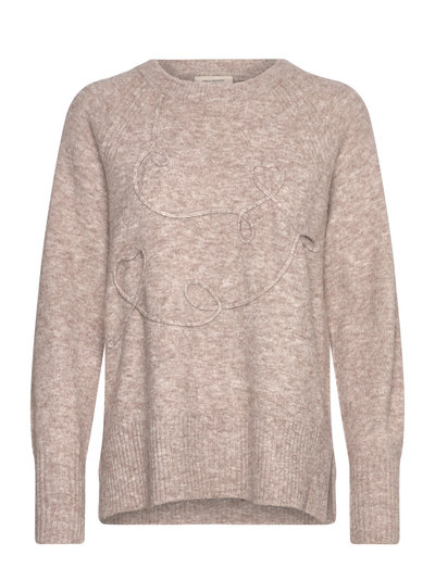 Denna stickade tröja har en subtil, upphöjd design som ger en touch av diskret elegans. Det långärmade plagget har en klassisk rund halsringning och ribbstickad kant för en bekväm passform.