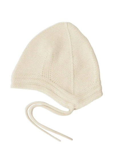 Denna mössa är tillverkad av mjuk merinoull och ger en åtsittande och bekväm passform för bebisar. Designen har en enda söm baktill, subtila formdetaljer och dekorativa pärlstickade ränder längs kanterna. Fina stickade band ger en delikat touch. Merinoullen är BLUESIGN®- och RWS-certifierad och fri från skadliga kemikalier.