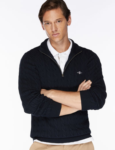 Den här Gant Clothing halv-zip pullovern är ett klassiskt plagg i stickat. Den har en kabelvirkad design och en halv-zip-stängning. Pullovern är perfekt för lager på lager under de kallare månaderna.