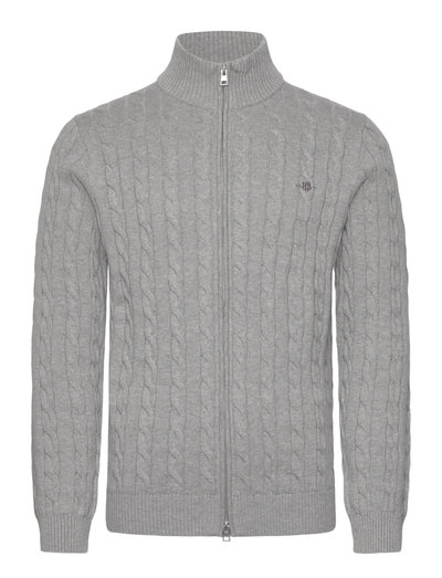 Traditionell kabelstickning definierar denna mångsidiga cardigan, vilket gör den till ett smart tillskott i varje garderob. Denna modell i normal passform är tillverkad i ren bomull och har dragkedja fram, ribbade muddar och varumärkets sköldlogo broderad på bröstet.