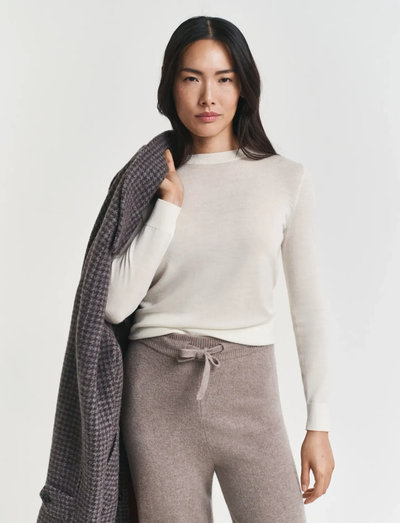 Denna tröja med rund hals är tillverkad av extrafin merinoull och känns mjuk och bekväm. Den har en normal passform, ribbade detaljer i halsen, ärmsluten och nederkanten samt en diskret logotyp broderad ovanför ärmslutet. Lättskött och kan tvättas i maskin på ullprogram.